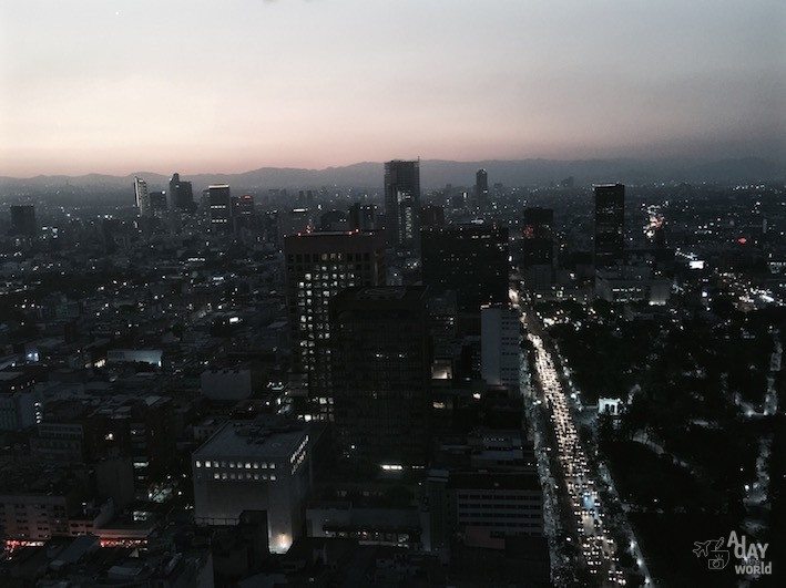 183 mètres et 44 étages. Il est possible de grimper jusqu’au 43ème pour $100 pesos soit 4,50€. Un peu plus abordable que l’Empire State à New-York City. Par contre, arrivée en haut, le mec me dit que je ne peux pas faire de photo avec mon réflex… je rêve ou c’est la même blague que pour la soirée catch ? Ils commencent à me gaver sévère avec leurs règles à deux balles. Enfin ça m’a pas empêché !